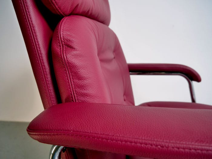 Description : Le cuir GEA est un cuir pleine fleur pigmenté d’origine bovine, à l’aspect naturellement doux, résistant au feu et aux taches, avec des propriétés antibactériennes idéales pour l’ameublement.
